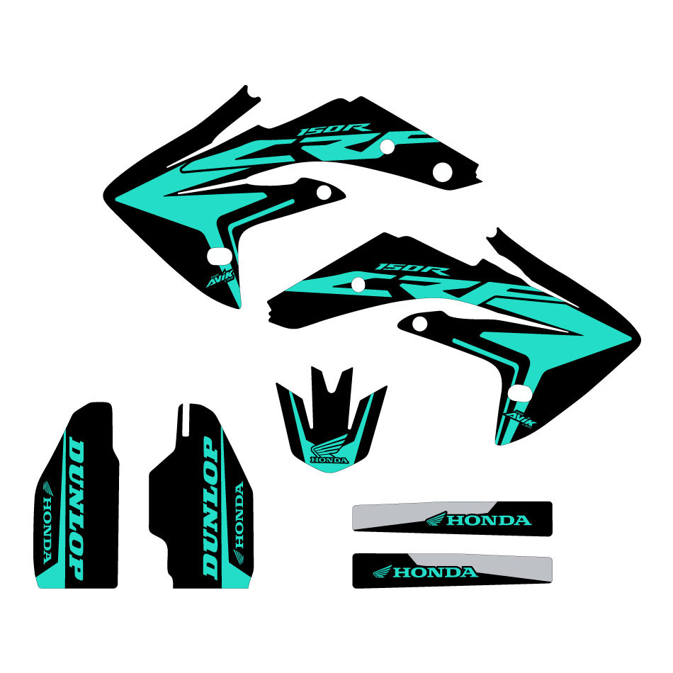 Click the button below to add the CRF150R oem replica updated mint/black graphic kit to your wish list.